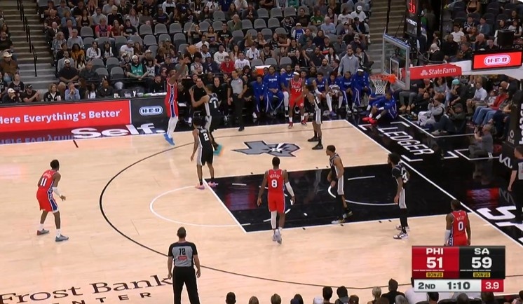跟前队友学的?恩比德面对文班 双后撤步从罚球线撤出三分线命中